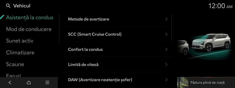 Configurați setările pentru diferite sisteme de asistență a șoferului, pentru garantarea siguranței.