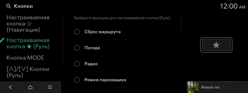 Выберите функцию для настраиваемой кнопки (Руль).