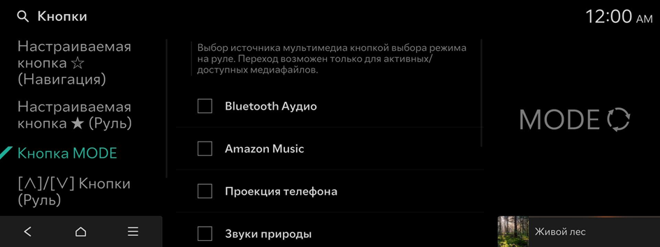 Выбор источника мультимедиа кнопкой выбора режима на руле. Переход возможен только для активных/доступных медиафайлов.