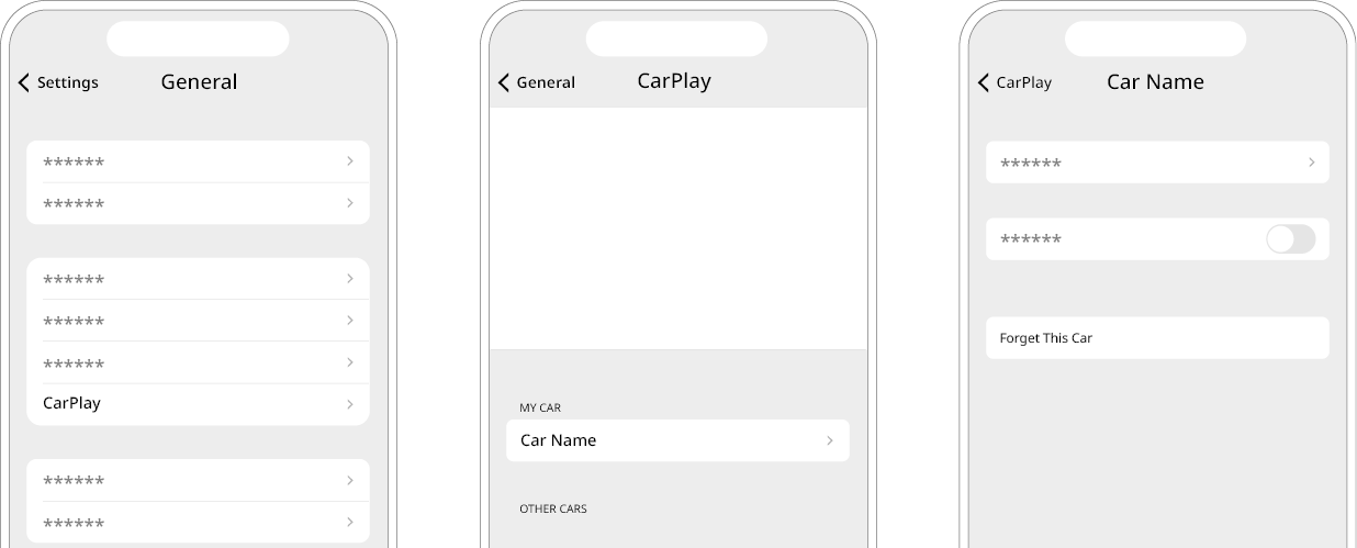 iPhone স্ক্রিনে, Settings ▶ General ▶ CarPlay টিপুন, সংযোগ বিচ্ছিন্ন করতে গাড়িটি বেছে নিন এবং তারপরে Forget This Car টিপুন।