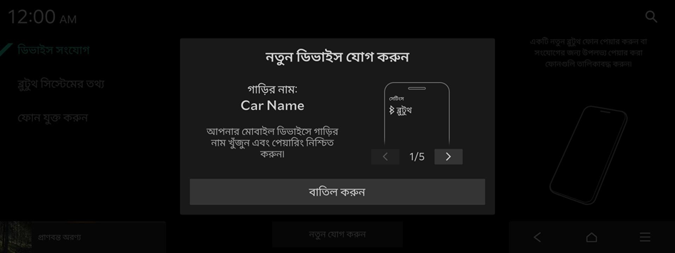 - সন্ধান করা ডিভাইস তালিকায় গাড়ির সিস্টেমটি কানেক্ট করতে ও বেছে নিতে, ব্লুটুথ ডিভাইসে ব্লুটুথ চালু করুন।