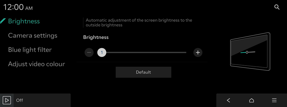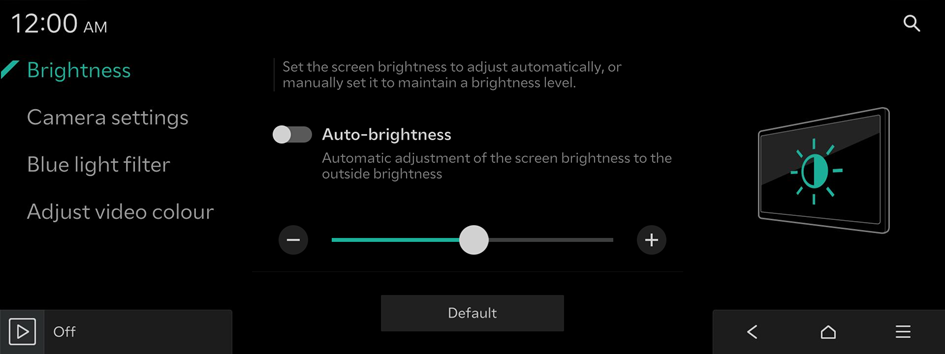 - To reset all screen brightness settings to the default values, press Default.