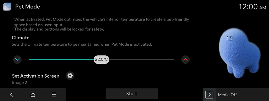 - Bluetooth and phone projection device connections are disconnected when pet mode is activated. The last connected device automatically reconnects when pet mode is deactivated. At this, media from the connected device will not play automatically.
