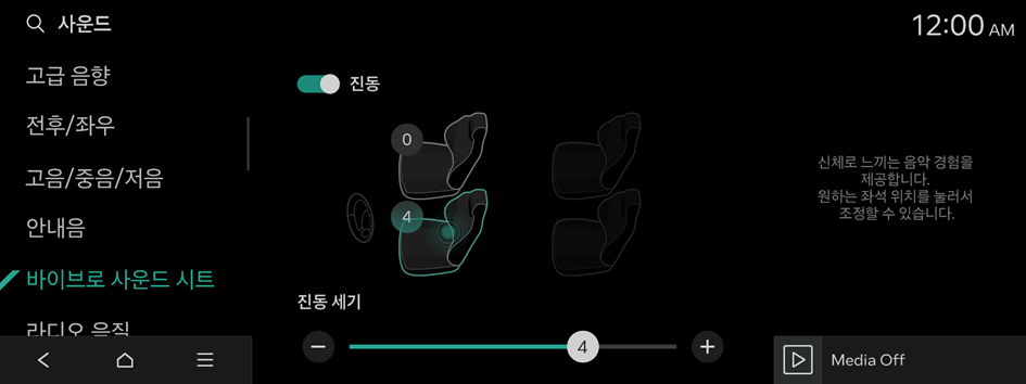신체로 느끼는 음악 경험을 제공합니다. 원하는 좌석 위치를 눌러서 조정할 수 있습니다.