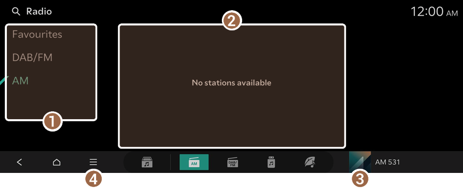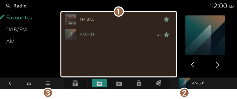 . - • You can save all stations, accessible from the AM screen, to the favourites list. On the AM screen, press