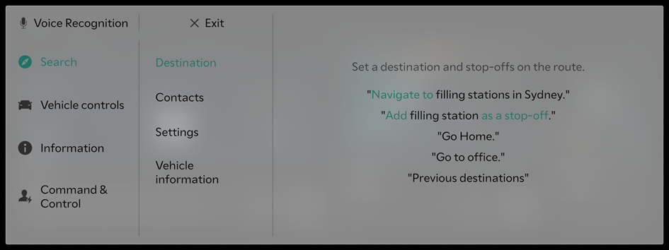 - When using voice recognition some commands may not be supported depending on the vehicle model and features.