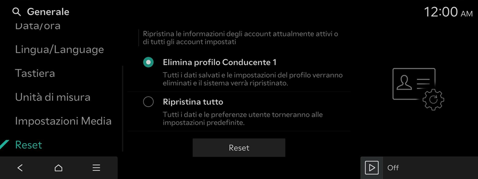 - È anche possibile ripristinare tutte le impostazioni per il profilo di login.