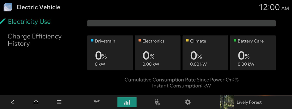 You can view the power consumed by the drivetrain, climate control, electrical systems and battery care function.
