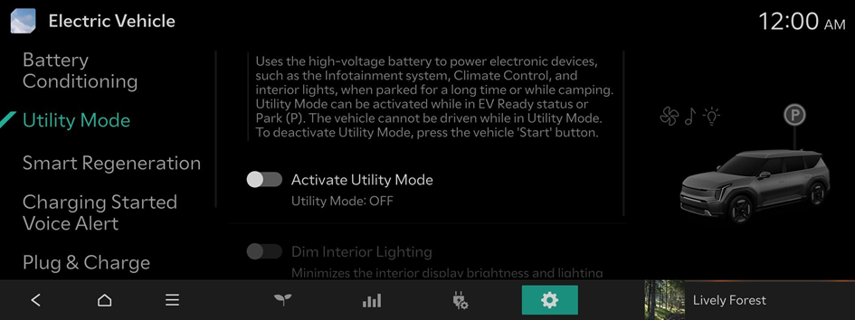 - To deactivate Utility Mode, press the vehicle 'Start' button.