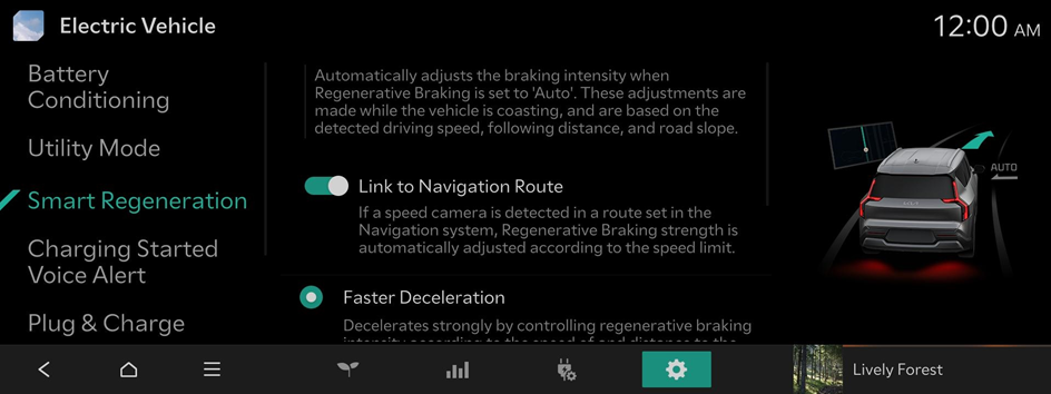 Automatically adjusts the braking intensity when Regenerative Braking is set to 'Auto'. These adjustments are made while the vehicle is coasting, and are based on the detected driving speed, following distance, and road slope.