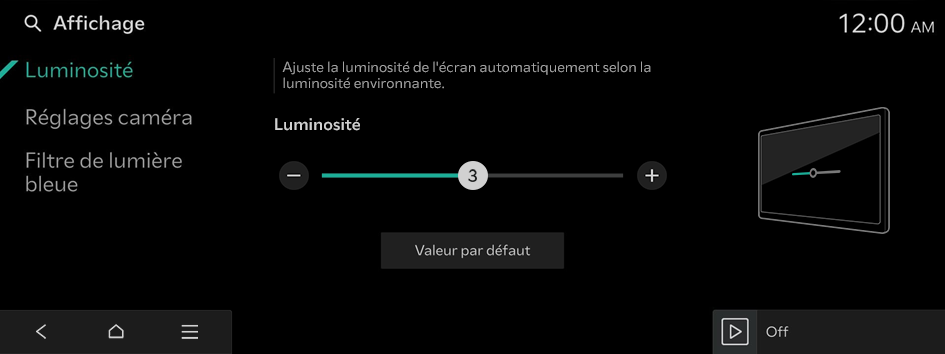 Réglages Écran (selon équipement)