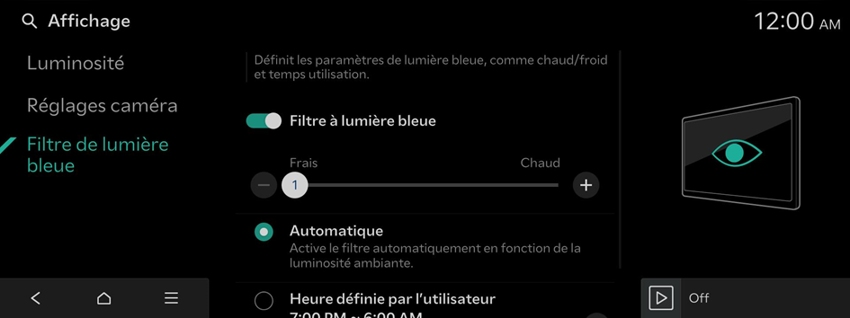 Configurez les réglages pour le filtrage de lumière bleue.