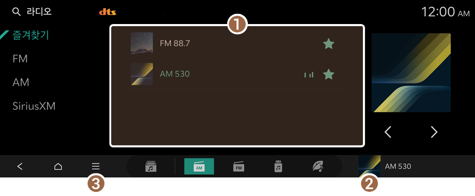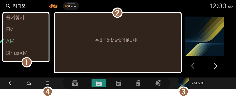 - AM 방송 스캔을 누르면 수신 상태가 좋은 방송을 5초씩 번갈아 들어볼 수 있습니다.