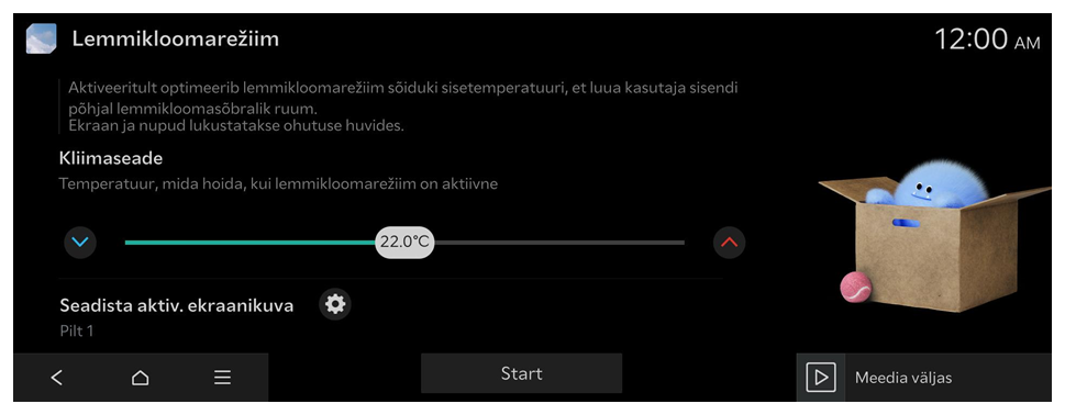 Kui peate oma lemmiklooma lühikeseks ajaks sõidukisse üksi jätma, optimeerib lemmikloomarežiim sõiduki salongi temperatuuri, loomaks kasutaja sisendi põhjal lemmikloomasõbraliku ruumi.