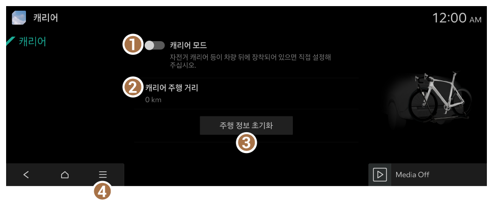 자전거 캐리어 등이 차량 뒤에 장착되어 있으면 직접 설정해 주십시오.