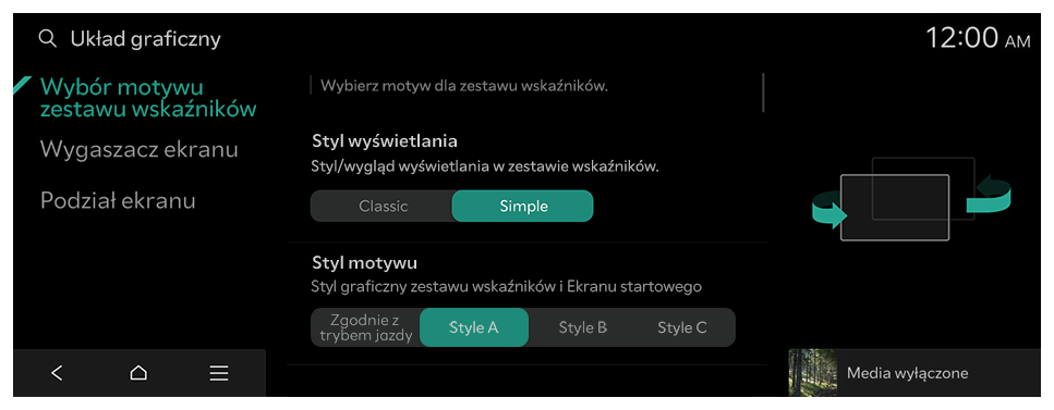 - Dostępne ustawienia mogą się różnić w zależności od modelu i specyfikacji pojazdu.