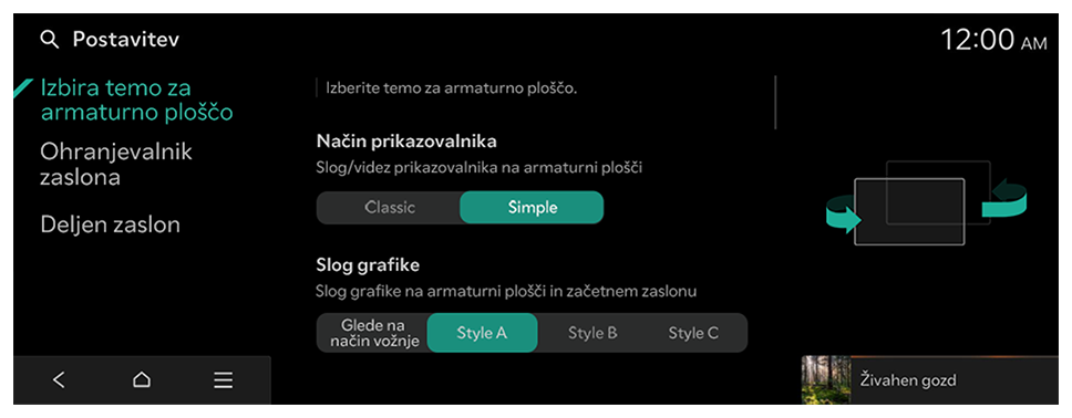 Slog grafike na armaturni plošči in začetnem zaslonu.