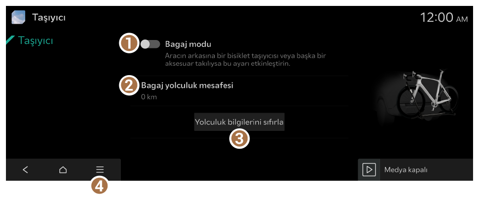 - Aracın arkasına bir bisiklet taşıyıcısı veya başka bir aksesuar takılıysa bu ayarı etkinleştirin.