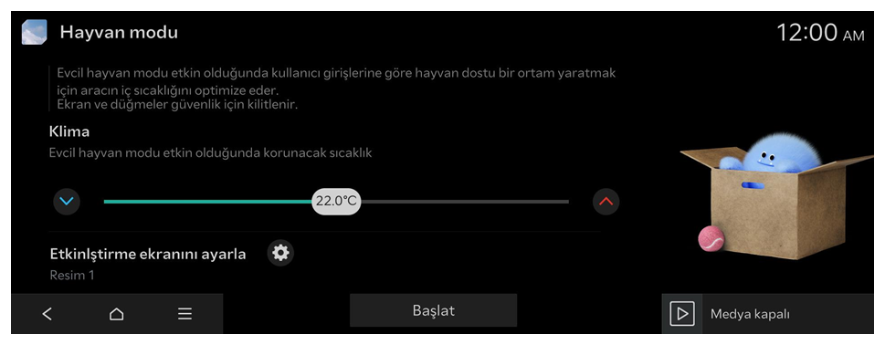 - Evcil hayvanların araçta uzun süre gözetimsiz bırakılması önerilmez. Lütfen bu özelliği kısa süreliğine kullanın.