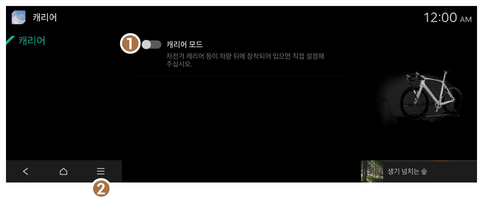 자전거 캐리어 등이 차량 뒤에 장착되어 있으면 직접 설정해 주십시오.