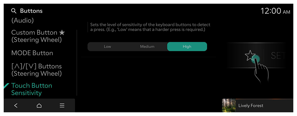 Configure features to activate when pressing buttons on the control panel or steering wheel.