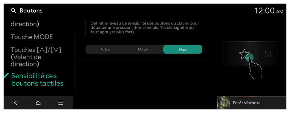 Configurez les fonctionnalités à activer lorsque vous appuyez sur les touches du panneau de commande ou du volant.