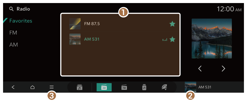 . - You can save all stations, accessible from the AM screen, to the favorites list. On the AM screen, press