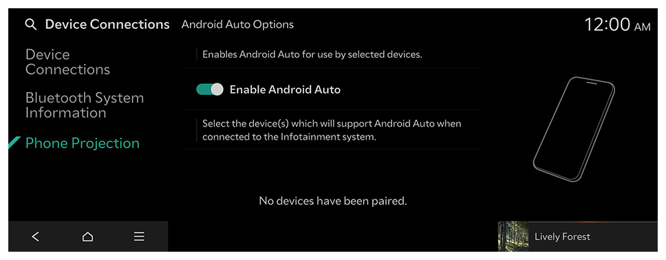 - On the Home screen, press Setup ► Device Connections ► Phone Projection ► Android Auto Options and then enable Enable Android Auto.