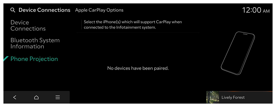 - On the Home screen, press Setup ► Device Connections ► Phone Projection ► Apple CarPlay Options.