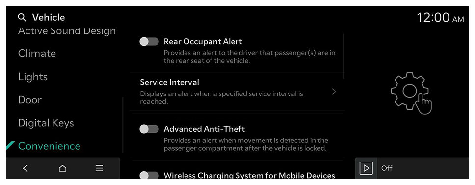 - Vehicle settings can be changed only when the vehicle is turned on.