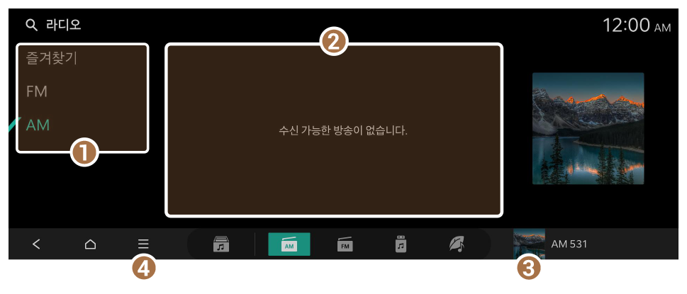 - AM 방송 스캔을 누르면 수신 상태가 좋은 방송을 5초씩 번갈아 들어볼 수 있습니다.
