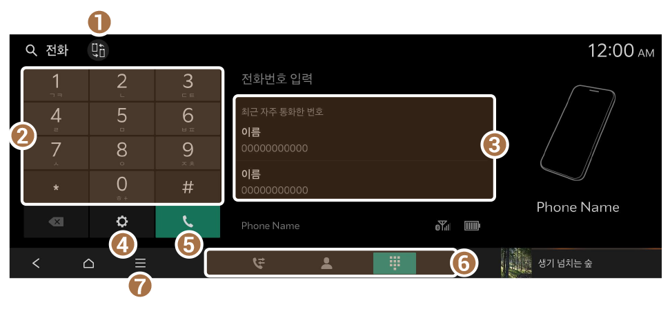 - 키패드를 사용해 전화번호를 입력할 수 있습니다.