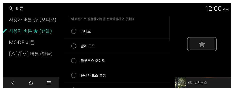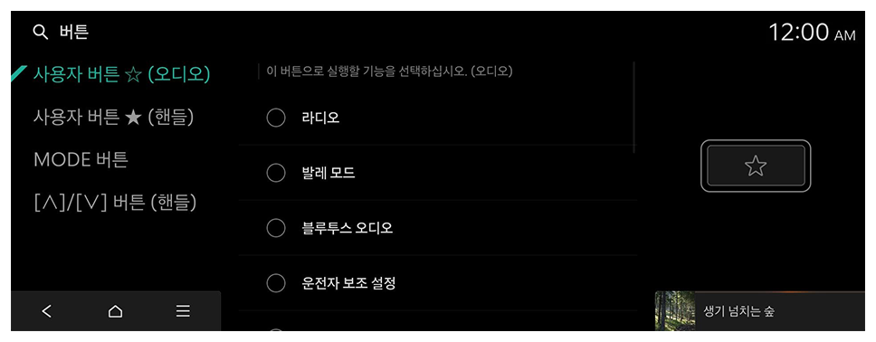 조작 패널이나 스티어링 휠의 버튼을 눌렀을 때 실행할 기능을 설정할 수 있습니다.