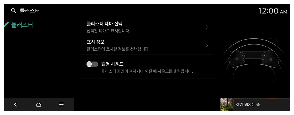 클러스터 화면이 켜지거나 꺼질 때 사운드를 출력합니다.