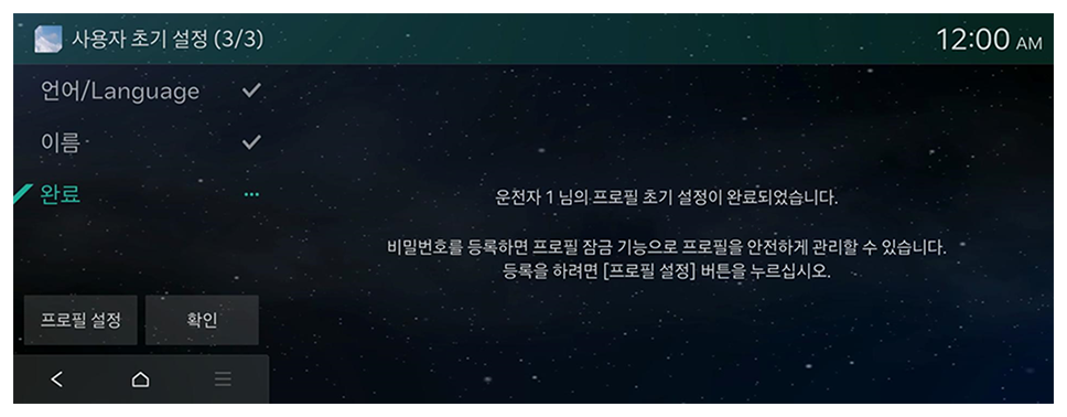 개인화 서비스를 이용하시려면, 프로필이 등록된 사용자가 필요합니다. 등록된 사용자가 없다면 아래의 안내를 통해 프로필 등록 후 Kia Connect 앱 계정과 차량 단말 계정을 연동하여 개인화 서비스를 이용해 보세요.