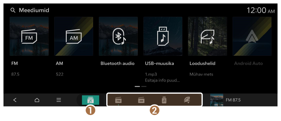 Saate esitada muusikat või jaamu eri meediumide abil, näiteks raadio või helifailide mängija kaudu.
