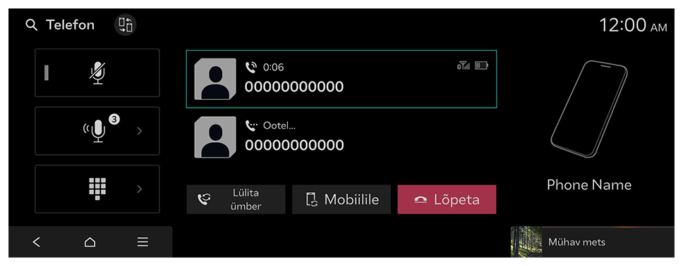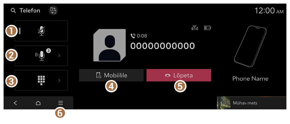 - Kui mobiiltelefon on süsteemiga ühendatud, võidakse sõiduki kõlarit kasutada kõnehelina esitamiseks ka siis, kui olete sõidukist väljunud. Kõne katkestamiseks keelake süsteemis Bluetoothi ühendus või lülitage mobiiltelefonis Bluetoothi funktsioon välja.