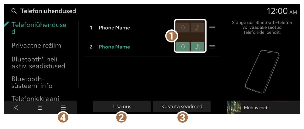 - Juurdepääsu saab andmetele lubada või keelata mobiiltelefoni Bluetoothi sätete menüü kaudu. Lugege mobiiltelefoni kasutusjuhendit.