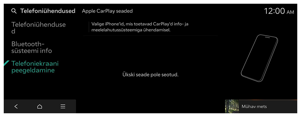 - Tehke avakuval valikud Seaded ► Telefoniühendused ► Telefoniekraani peegeldamine ► Apple CarPlay seaded.