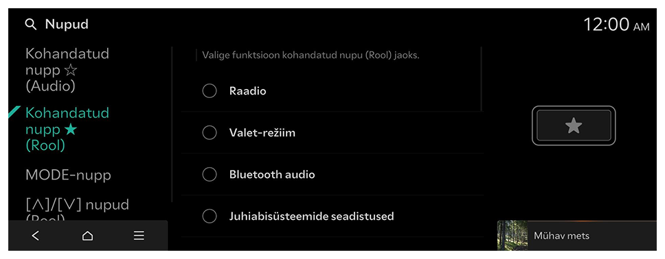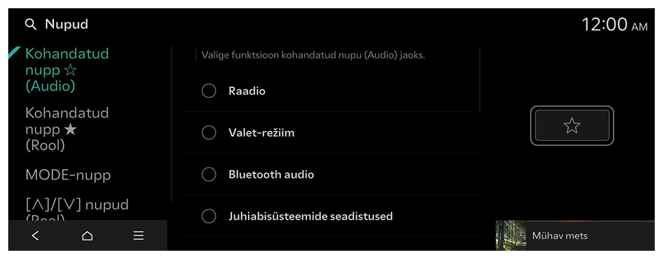 Valige funktsioon kohandatud nupu (Audio) jaoks.