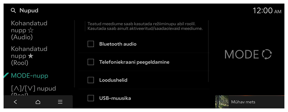 - Saadaolevad sätted võivad erineda olenevalt konkreetse sõiduki mudelist ja tehnilistest andmetest.