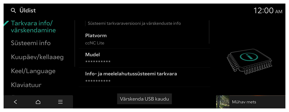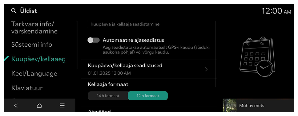 Aeg seadistatakse automaatselt GPS-i kaudu (sõiduki asukoha põhjal) või võrgu kaudu.
