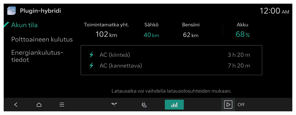 ![]()  | Lataaminen käyttämällä talteenotettua jarrutuksen hidastusenergiaa  |