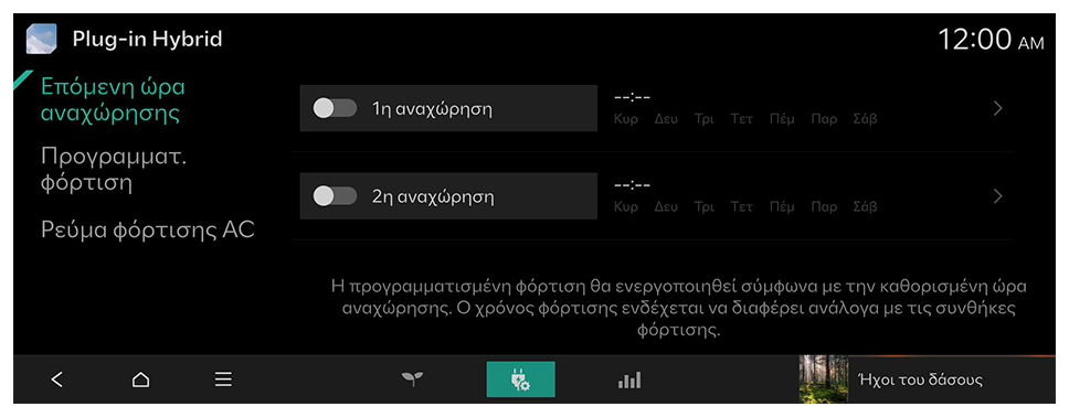 Μπορείτε να διαμορφώστε διάφορες ρυθμίσεις φόρτισης, όπως την αυτόματη φόρτιση μπαταρίας στην καθορισμένη ώρα αναχώρησης.