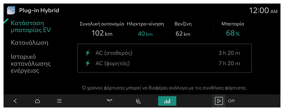 Μπορείτε να δείτε την οδηγική αυτονομία και τον εκτιμώμενο χρόνο φόρτισης.