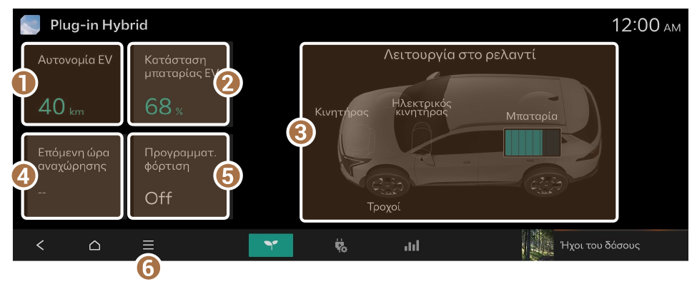 Η οθόνη «Υβριδικό Plug-in» παρέχει τις ακόλουθες λειτουργίες και πληροφορίες: