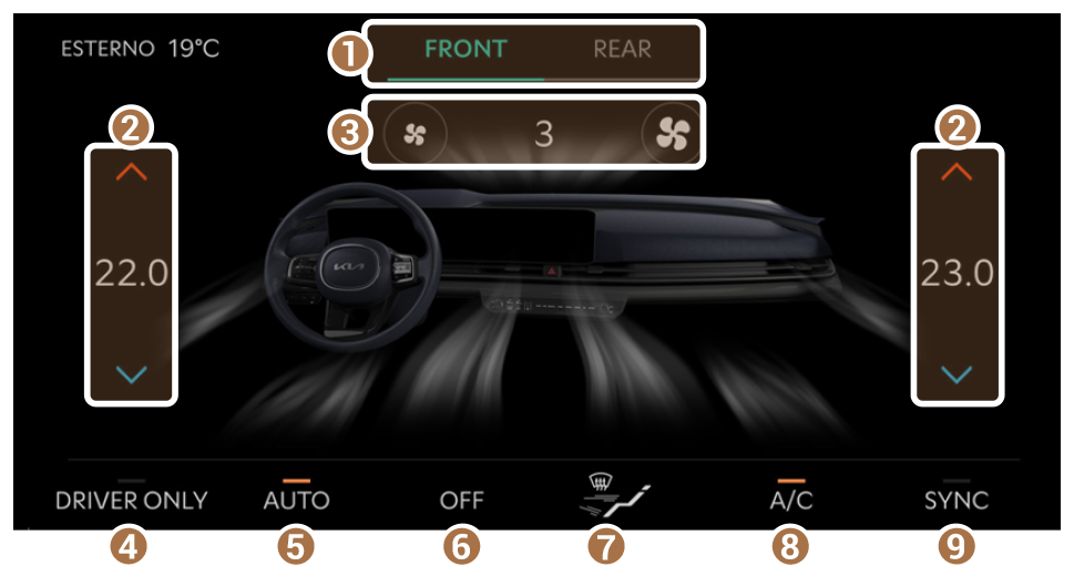 - Consente di attivare o disattivare la funzione che sincronizza la temperatura del sedile del guidatore e del passeggero.