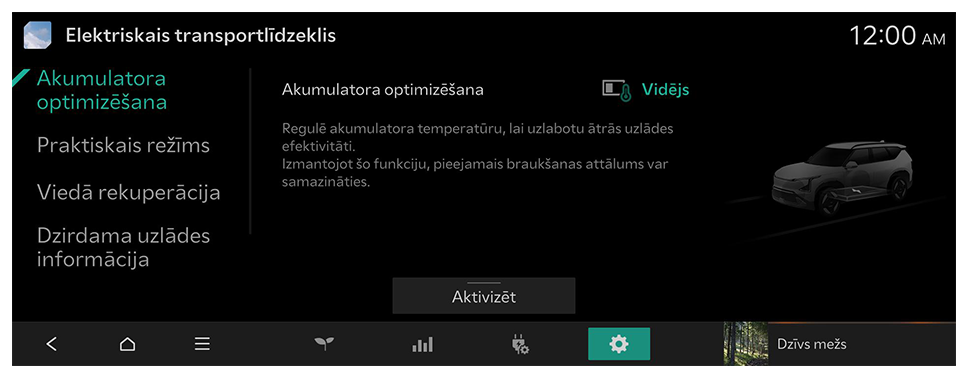 Elektrotransportlīdzekļa iestatījumu konfigurēšana