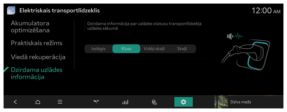 Skaņas informācija par uzlādes statusu, kad transportlīdzeklis sāk uzlādi.