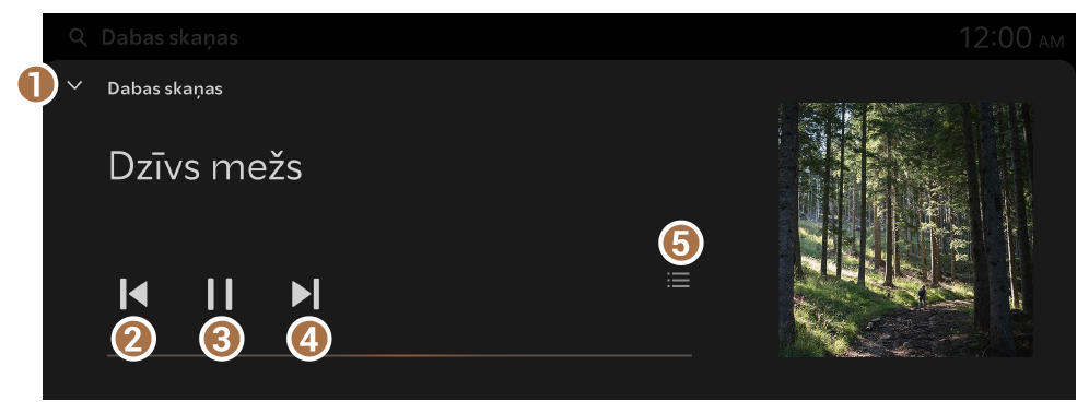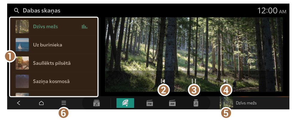 - Parāda dabas skaņu atskaņotāja ekrānu.